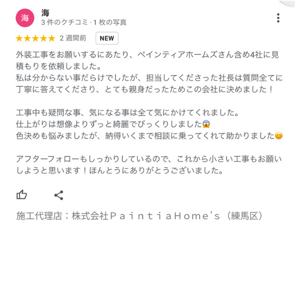 ペイプロは外壁塗装をご検討中のお客様に、無料で塗装業者をご紹介するサービスです。 お客様の要望をもとに、Google口コミ高評価、厳選な審査をクリアした優良の業者をご紹介いたします。
