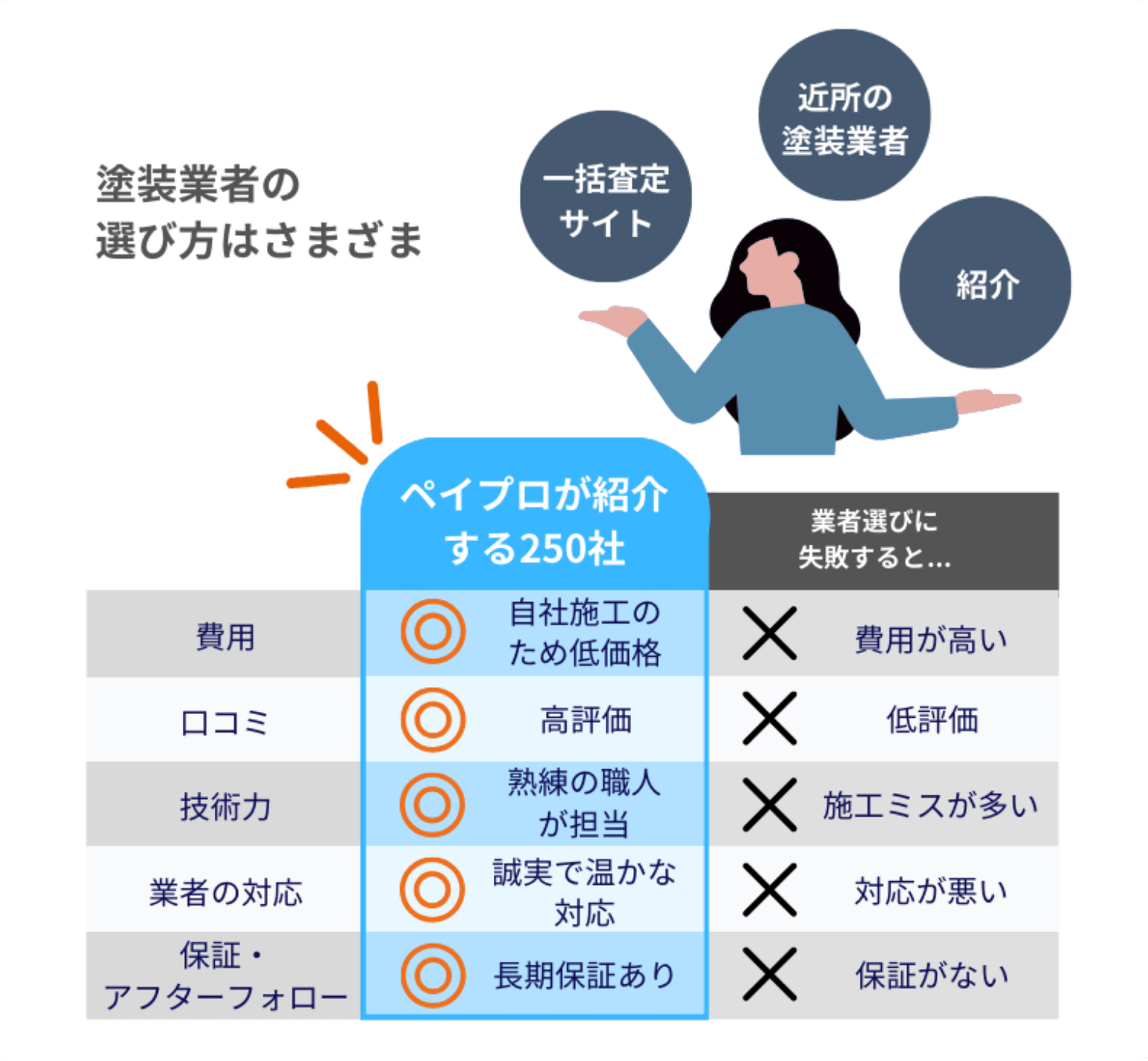 「ペイプロ」では客観的な審査で厳選した、Google口コミ高評価の優良塗装業者250社しか紹介しません。